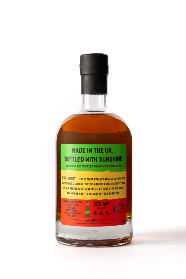 The Rum and reggae coffee rum, is a silky blend of spiced rum and fine arabica coffee, grown in diverse terrains and climates, to give an overall rich rum taste with a superb taste of fair trade coffee.